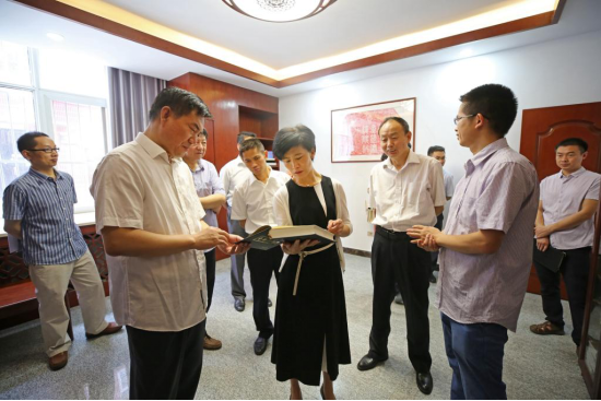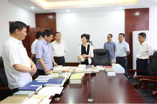 (文/李咏秋 图/广娟)6月25日上午,市委常委、宣传部长张慧莉、市委宣传部副部长周哲兵、十堰市文联主席杨广智、十堰市社科联主席欧阳山一行来米兰官网米兰milan官方网站及武当文化研究与传播中心调研。校党委书记程红兵、党委副书记杨立志、校宣传部长计毅波以及马院院长杨高举、副院长黄永昌、院长助理周江平、经济管理学院副院长周恩德接待并陪同调研。