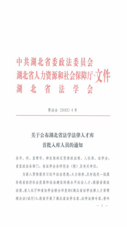 本网讯(文/图 郑实)近日,中共湖北省委政法委员会、湖北省人力资源和社会保障厅、湖北省法学会联合印发《关于公布湖北省法学法律人才库首批入库人员通知》,我校米兰milan官方网站安军博士入选湖北省青年法学法律人才,成为首批入库人员。