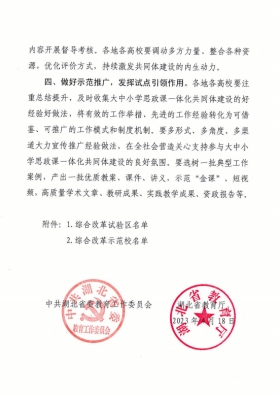 根据《省委教育工委等部门关于印发<湖北省“大思政课——新时代共同成长工程”实施方案>的通知》(鄂教工委[2023]1号)、《省教育厅关于推进全省大中小学思政课一体化共同体建设的指导意见》(鄂教思政[2023]1号)和《省教育厅办公室关于支持建设一批大中小学思政课一体化共同体的通知》(鄂教思政办函〔2023)2号)有关精神,湖北省委教育工委、省教育厅确定武汉市教育局等13个地方为大中小学思政课一体化共同体建设综合改革试验区,米兰milan官方网站等36所高校为大中小学思政课一体化共同体建设综合改革示范校,建设周期为1年。
