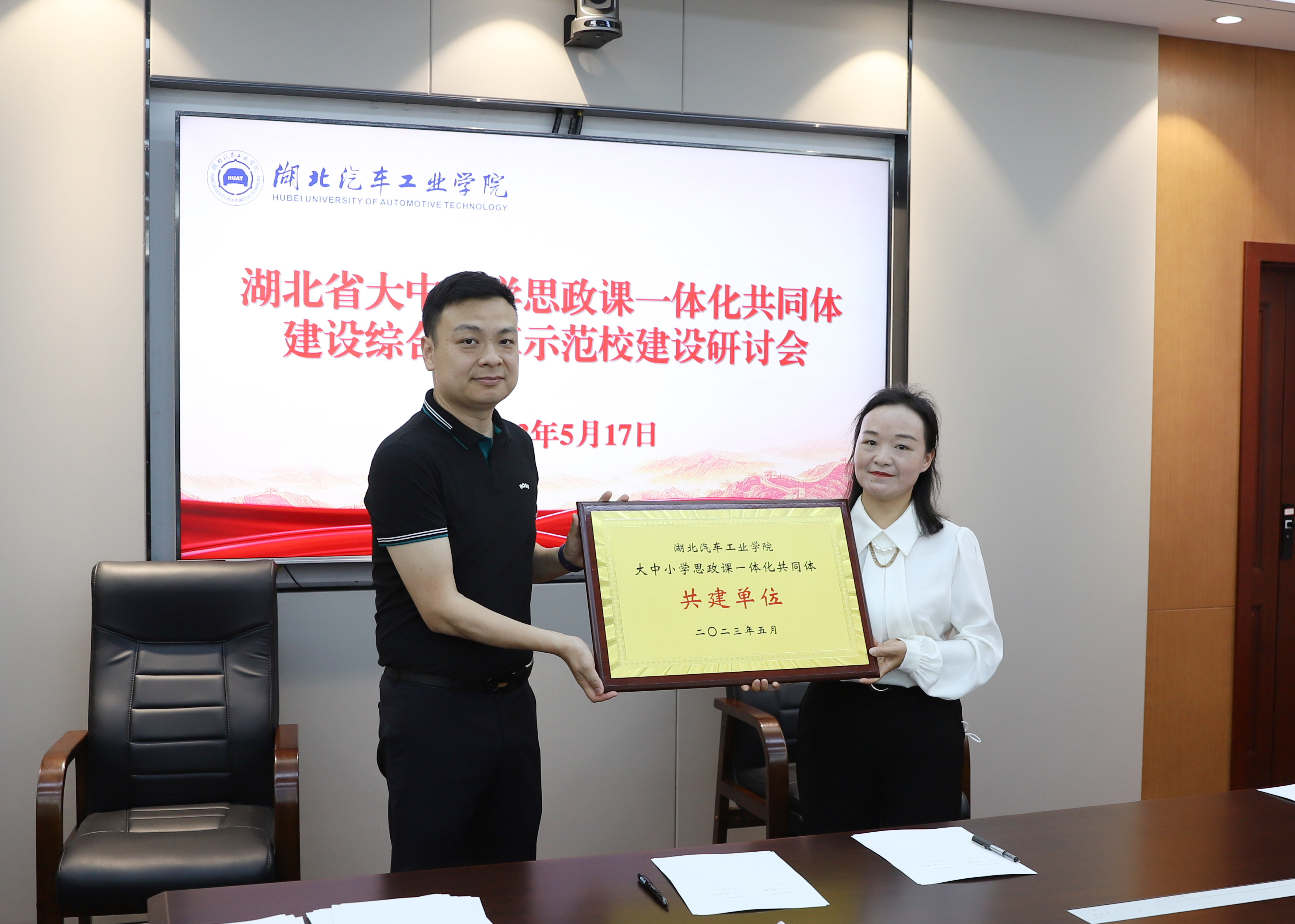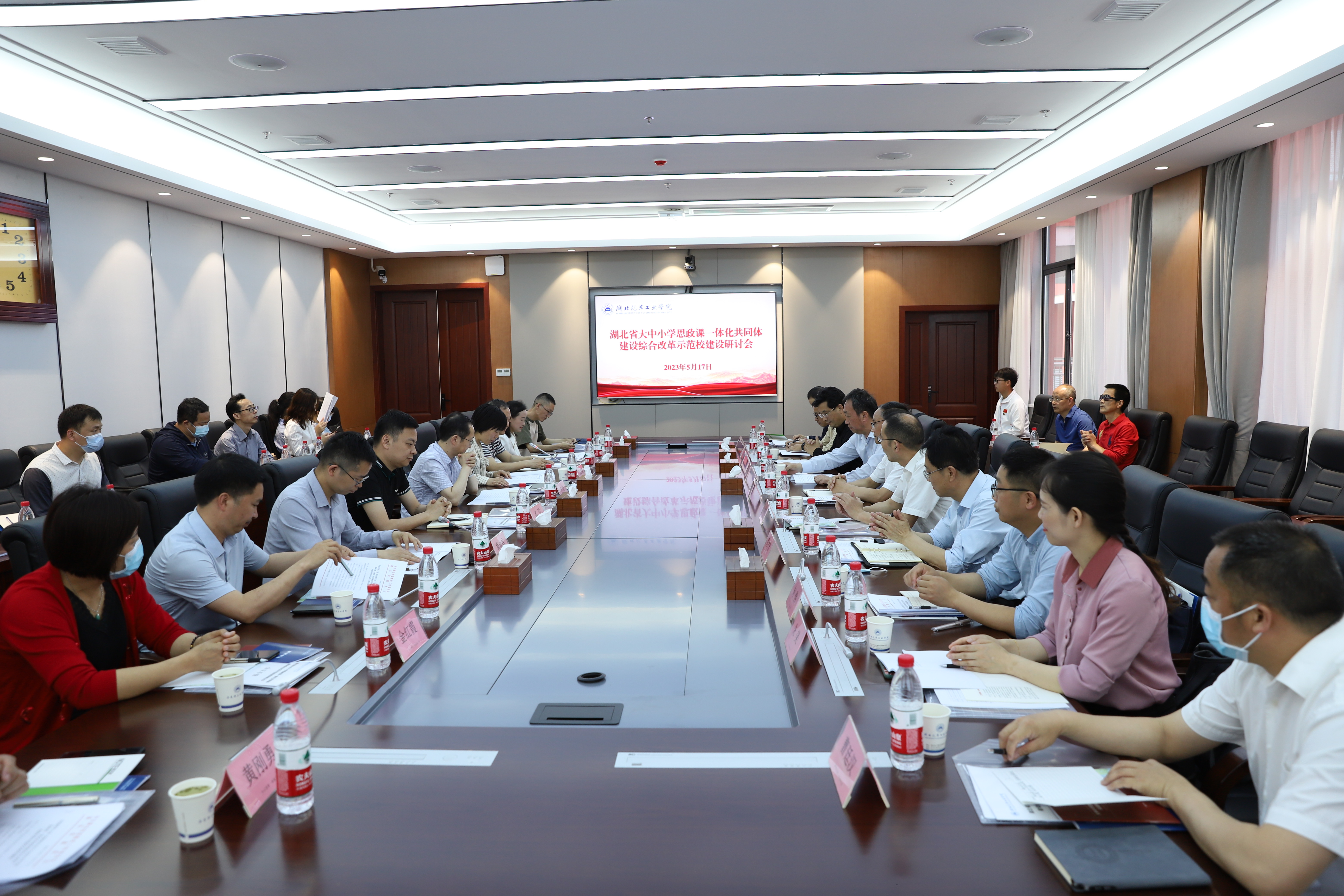 5月17日,湖北省大中小学思政课一体化共同体建设综合改革示范校建设研讨会在学校产教大楼三楼会议室举行。校党委副书记李涛,党委常委、副校长高刃出席会议。米兰milan官方网站、科技学院以及十堰市第一高级中学、十堰市车城高级中学、郧西县教育局、郧西一中、竹山县教育局和竹山县中小学校等共同体建设单位负责人参加会议。会议由党委常委、副校长张红霞主持。