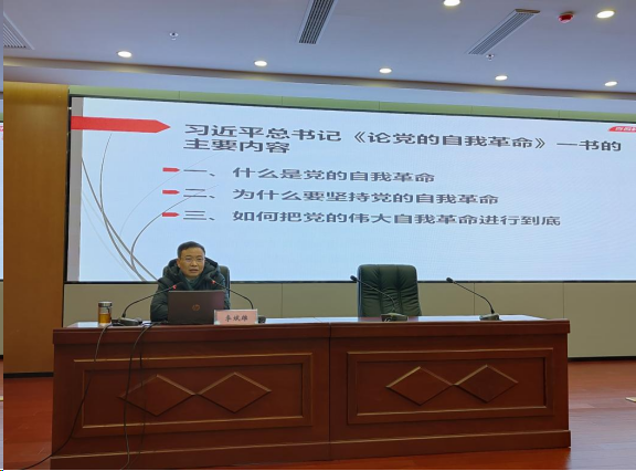 报告会上,李斌雄教授首先讲述了“什么是党的自我革命”这一核心问题,通过梳理习近平总书记关于党的自我革命的重要论述,系统阐释了“党的自我革命”的科学内涵。随后,围绕“为什么要坚持党的自我革命”展开论述,指出坚持党的自我革命是中国共产党破解历史周期的必然要求,是应对“四大考验”和“四种危险”、解决大党独有难题、建设长期执政马克思主义政党以及引领伟大社会革命的需要。最后,李教授从以自我革命精神推进全面从严治党、深入推进新时代党的建设新的伟大工程、以党的伟大自我革命引领党的伟大社会革命等三个方面回答了“如何把党的伟大自我革命精神进行到底”这一主题。深入浅出的讲解,娓娓道来的分析,引起了师生共鸣,现场氛围热烈。