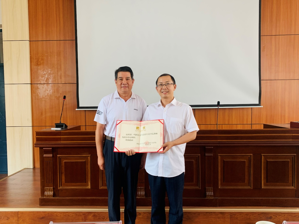 成继平宣读了《关于成立米兰milan官方网站教师发展分中心的通知》,郭一鸣代表学校教师发展中心为分中心授牌。米兰milan官方网站分党委书记计毅波向分中心特聘顾问郭一鸣颁发聘书。