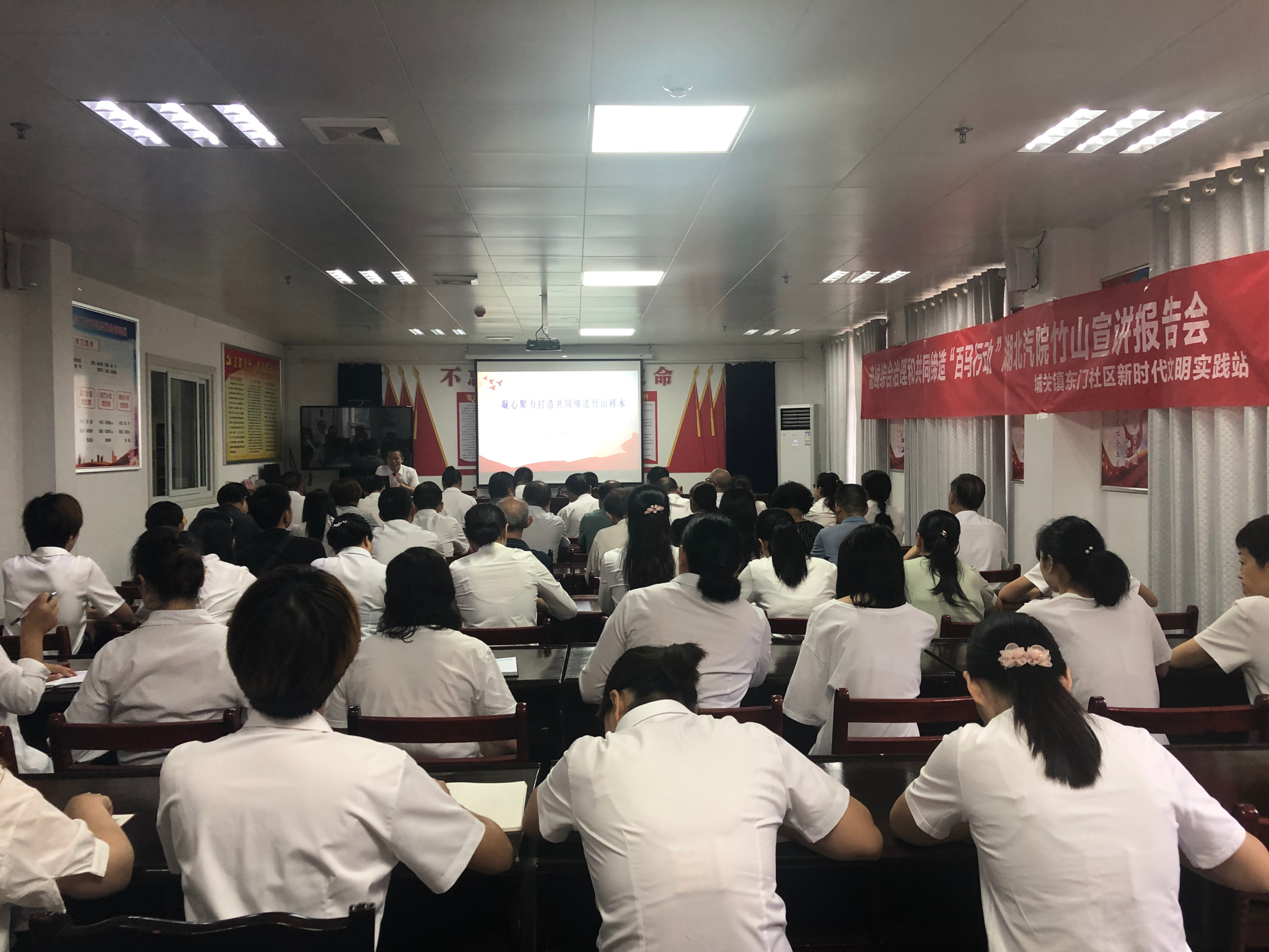 在竹山县城关镇共同缔造试点东门社区,米兰milan官方网站院长黄永昌以《凝心聚力打造共同缔造竹山样本》为题,结合竹山本地优秀精神文明实践,并围绕“紧扣政策文件,上接天线,彰显政治高度”“跟踪学术前沿,经世致用,突出理论热度”“把握社情民意,有的放矢,突出实践温度”“学习先进做法,他山之石,体现借鉴效度”“汲取传统智慧,知古鉴今,提升文化厚度”“探索特色亮点,活学活用,增加工作力度”六个方面展开宣讲。