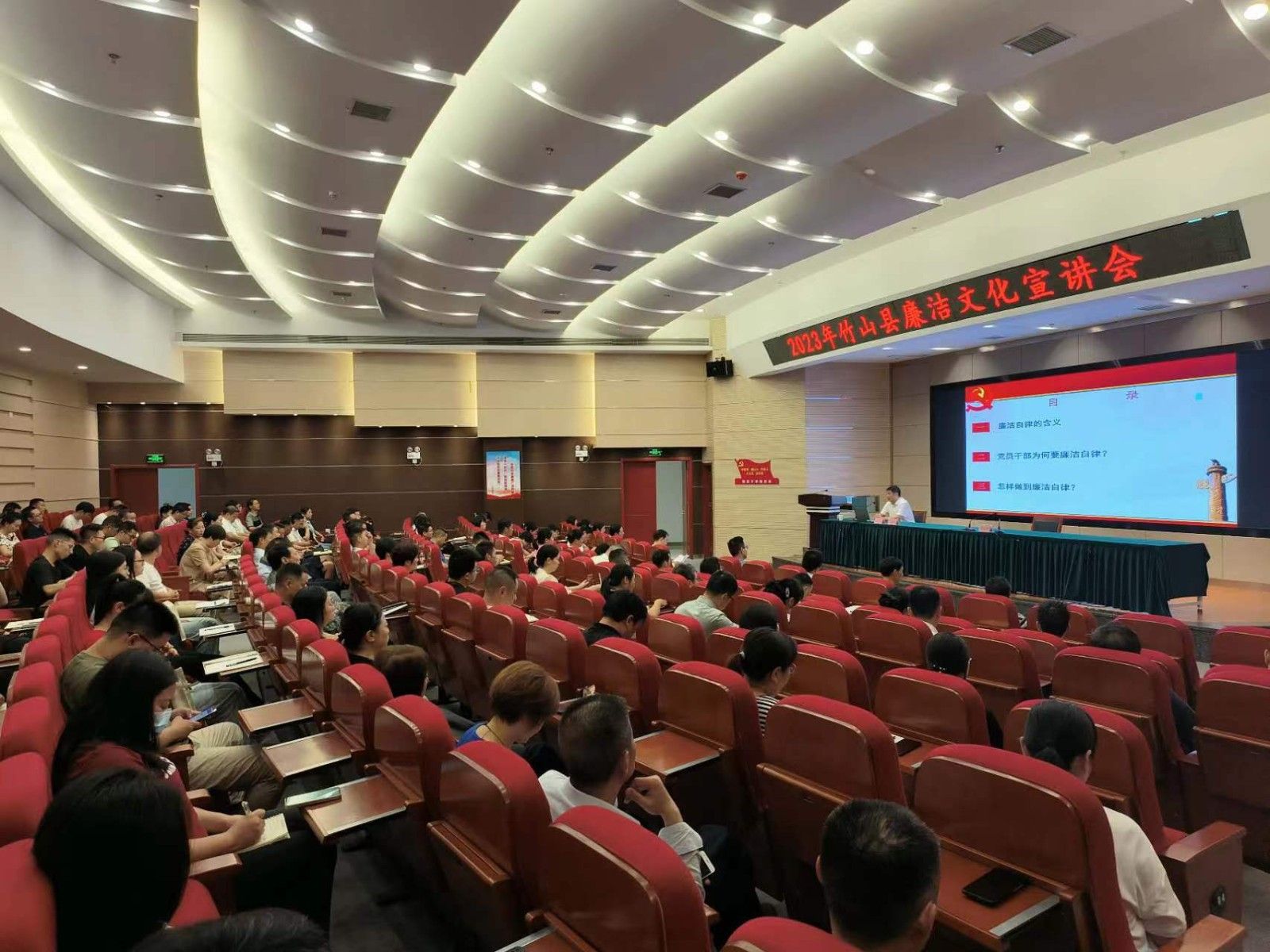 在竹山县新时代文明实践中心会场,米兰milan官方网站米兰milan官方网站分党委书记、教授计毅波以《争做新时代廉洁自律的表率——谈党员干部的廉洁自律》为题,形象生动地阐释了新时代廉洁文化的丰富内涵、推进廉洁文化建设的方法路径。